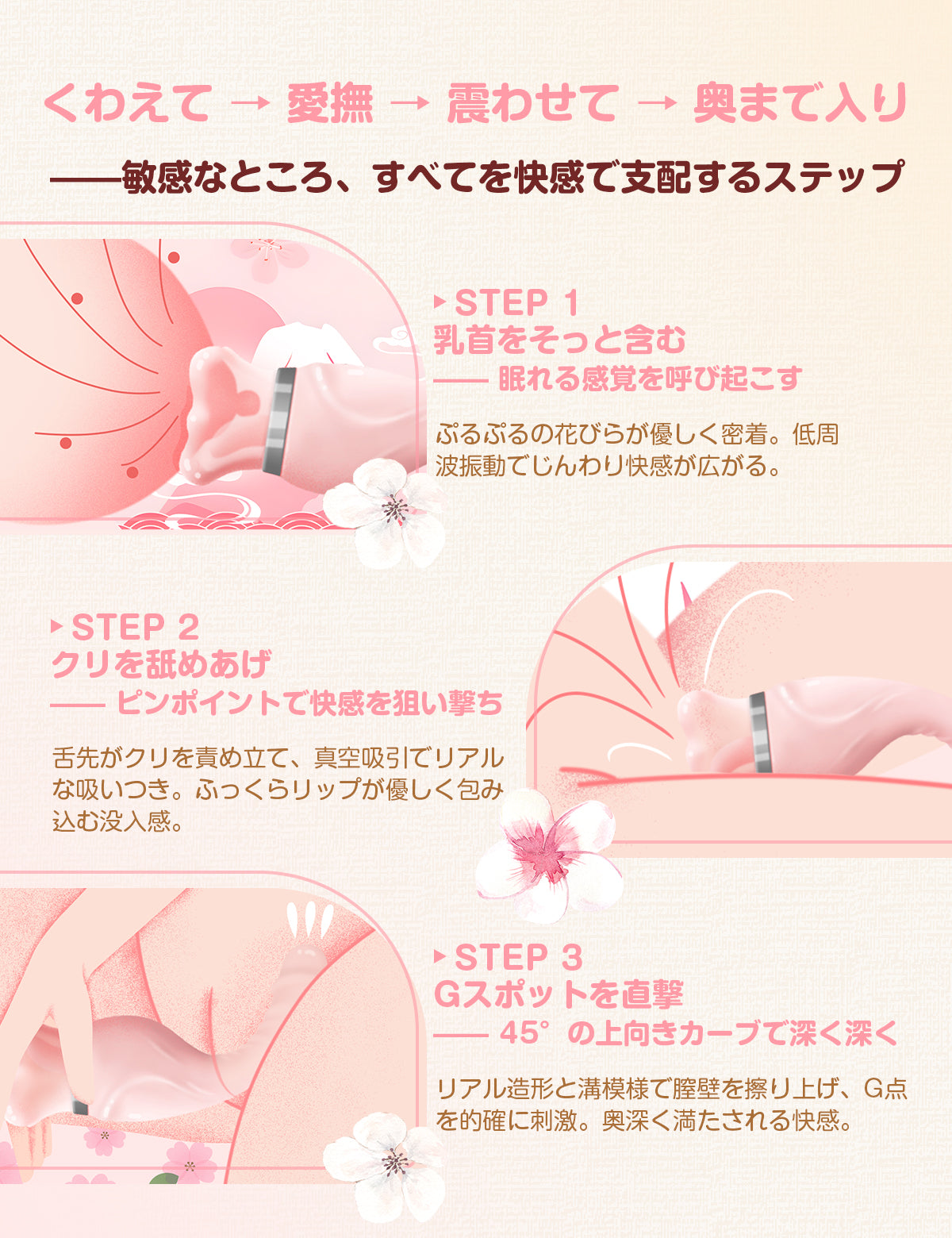 - 8cm唇形花瓣 x大直徑吮吸吸口