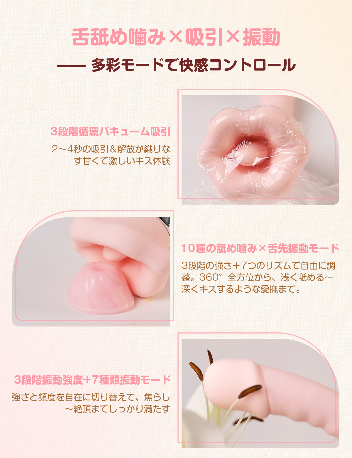 - 7.2mm纖薄舌尖和360°環繞雙唇,帶來比真實舌交更刺激的舌交體驗